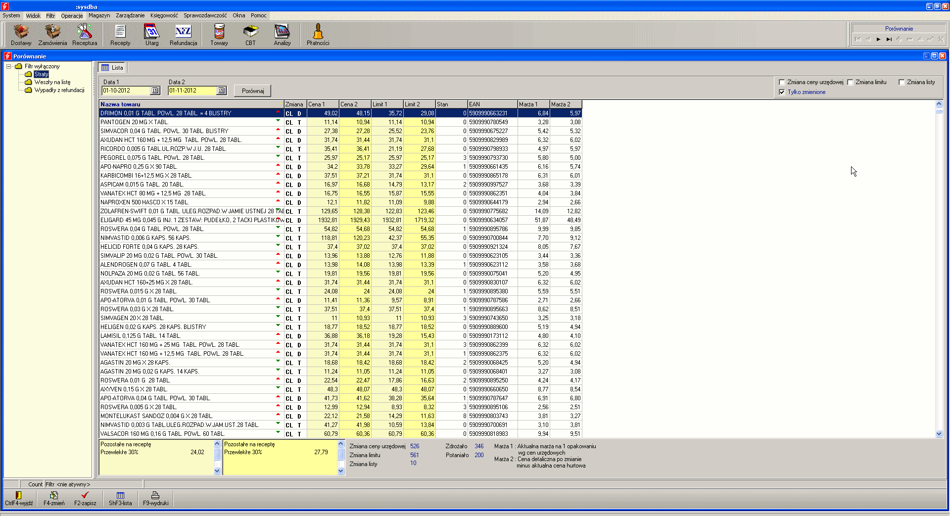 Aktualizacja list refundacyjnych, limitów i cen W programie Infofarm dla Apteki zastosowaliśmy unikalny mechanizm w zakresie pobierania i wczytywania do systemu parametrów sprzedaży. Parametry pobierane są automatycznie lub ręcznie z internetu. W dowolnym momencie, przed wejściem w życie, wczytasz je do kart towarów. I tyle. Nie znajdziesz w naszym programie archaicznej funkcji wczytywania z bufora, którą trzeba wykonać albo rano w dniu wejścia w życie, albo wieczorem dnia poprzedniego. System zna datę wejścia w życie, a w komputerze jest zegar – system automatycznie przejdzie na nowe parametry sprzedaży. |